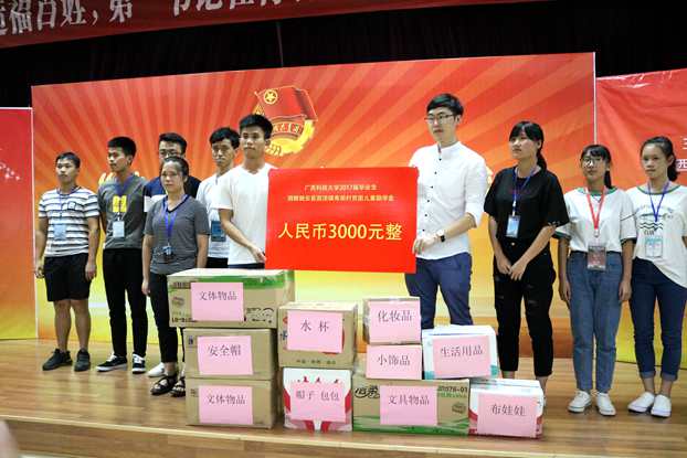 毕业生代表向融安县泗顶镇寿局村贫困儿童捐赠爱心款和物质
