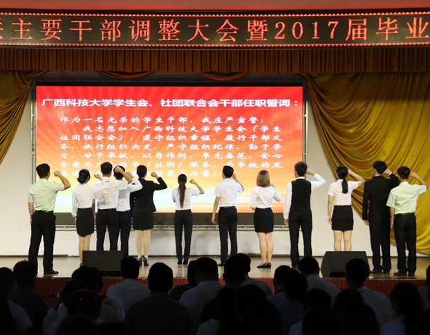 校学生会、校学生社团联合会新任主席团干部进行庄严的就职宣誓仪式
