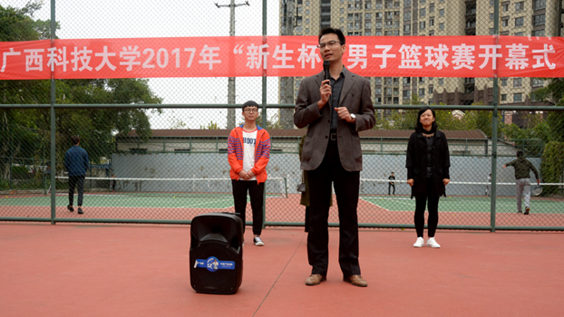 赛场点缀青春,拼搏成就希望。为了积极开展全民健身活动,让竞技体育全面发展,喜迎党的十九大胜利召开,10月17日下午,我校2017年“新生杯”男子篮球赛开幕式在学校南区球场举行。本次赛事由校团委和校学生会联合主办,校学生会体育部承办,各二级学院学生会、裁判爱好者协会共同协办。校团委副书记朱广生、校学生会主席沈璐、校团委实践部部长易敏出席了本次开幕式,开幕式由校学生会体育部赵海成同学主持。