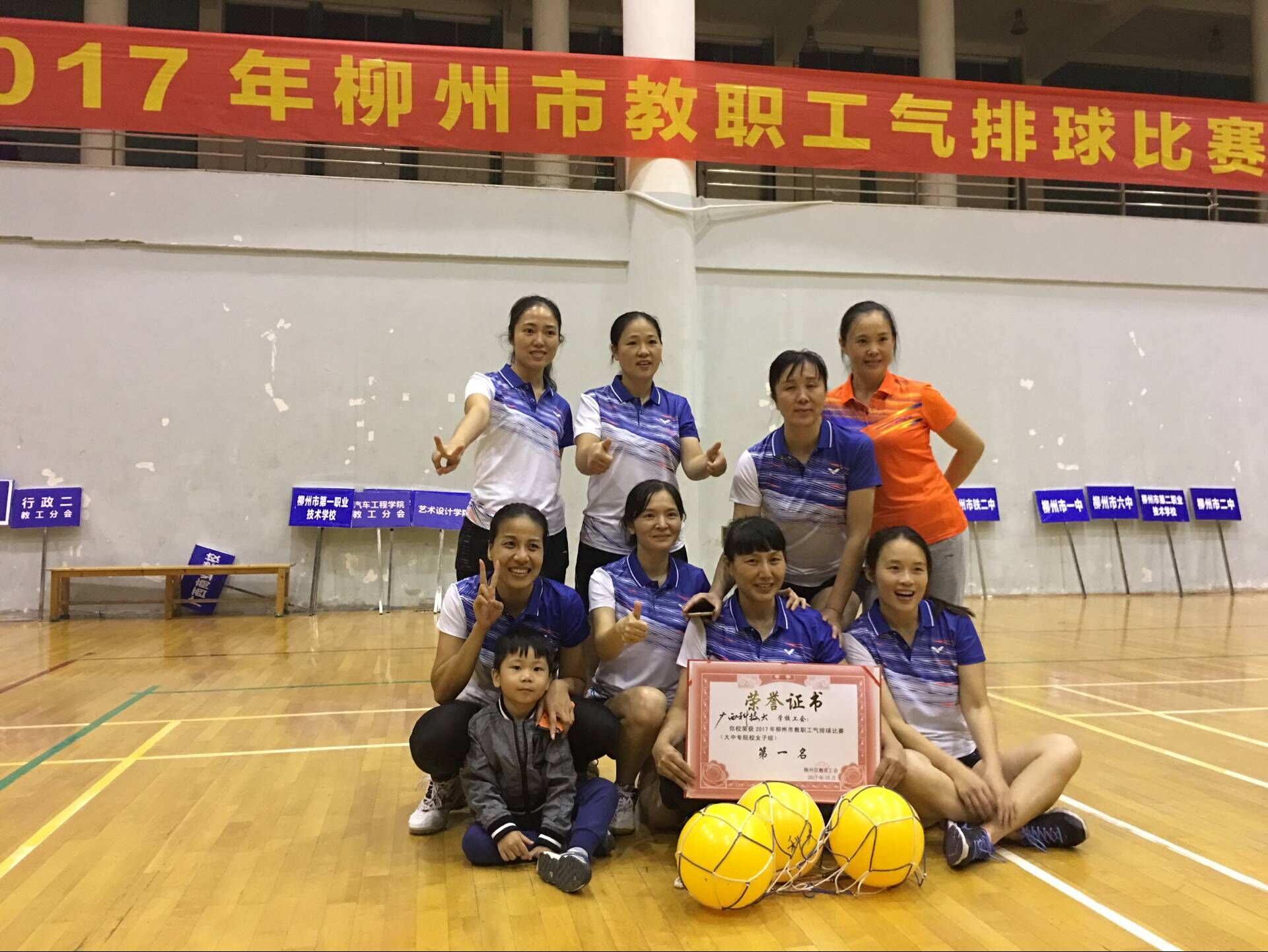 10月22日,在喜迎十九大胜利召开之时,从由柳州市教育工会主办,柳州职业技术学院承办的2017柳州市教职工气排球的比赛中传来喜讯:我校女教职工气排球队经过两天八场的奋力拼搏,以全胜的优异战绩勇夺柳州市大中专女子组气排球比赛的冠军,展示了我校女教职工团结一心、积极向上、勇于拼搏的精神面貌。分获第二、三、四名的是柳州技工学校、柳州市职业技术学院、广西商校。