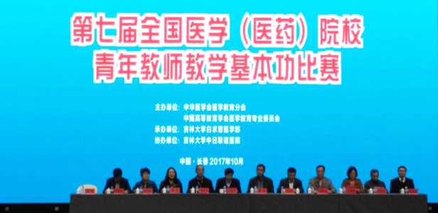 由中华医学会医学教育分会、中国高等教育学会医学教育专业委员会联合主办的全国医学(医药)院校青年教师教学基本功比赛,是全国医学(医药)院校最具影响力的教学赛事。第七届全国医学(医药)院校青年教师教学基本功比赛于 2017年10月20日至22日在吉林大学中日联谊医院举行。本次比赛有包括北京大学医学部、北京协和医学院、复旦大学、中山大学等众多名校在内的105所高等医学(医药)院校的105名优秀青年教师参加了角逐。比赛分基础组和临床组进行,其中基础组53名选手,临床组52名选手,是历届参赛人数最多的一届。比赛根据教案成绩(20%)、现场演示专家评价成绩(70%)和学生评价成绩(10%),评出一等奖(10%)、二等奖(30%)、三等奖(60%)和最受学生欢迎奖、最佳教案奖,并将在2017年12月举行的全国医学教育年会上颁奖。比赛期间,共有来自全国各高校600余人到场观摩学习。