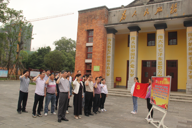 柳州市军事博物馆内,在党总支书记黄殿芳的带领下,全体党员一起高举右手,面对鲜红的党旗,再次庄严宣誓:“我志愿加入中国共产党……随时准备为党和人民牺牲一切,永不叛党。”铿锵恢宏的誓词,体现了每一位党员对中国共产党的无限忠诚。党员同志们的铮铮誓言,也震撼着在场每一位人员的心。