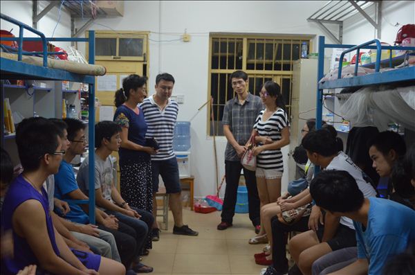 9月8日中秋月圆之夜,土木建筑工程学院党委副书记邓宇,11级年级主任陈云芳、14级年级主任李中华等老师前往土建学院各宿舍看望学生。 虽是中秋团圆夜,但土建学院的几位老师放弃了和家人一起赏月的时光,到宿舍里和学生聊天,和学生一起度过了这难忘的金秋,让学生逐渐淡忘了中秋佳节不能与家人团聚的遗憾。在聊天的过程中,邓宇老师鼓励学生在生活中,学习中,不要害怕孤独,不要害怕失败,努力学习,相信明天更好。邓老师亲切的话语,温暖了土建学子们的心,让他们感到中秋佳节日,虽暂不与亲同,但仍倍感温馨。