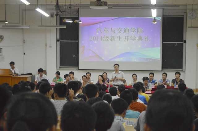 9月12日晚,汽车学院2014级新生齐聚第四教学楼第三阶梯教室举行开学典礼。与会领导有汽车与交通学院党委书记卢丽虹,院长向宇,副书记谭璐,副院长廖抒华、王镇江以及各位系主任和辅导员老师。会议由辅导员刘阳老师主持。