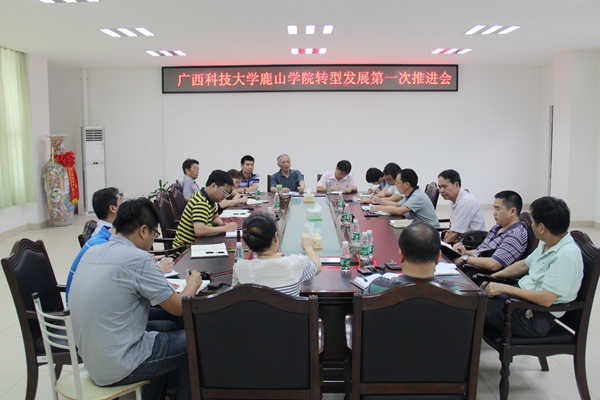 9月29日下午,鹿山学院第一次转型发展推进会在行政楼五楼会议室召开。会议由曾文波副院长主持,常务副院长张洪涛、党委书记韦鸿鹏、副院长韦兰用,教学督导组成员孔峰教授、王维熙教授,各系主任、合署系副主任,教务科研部领导以及相关人员参加了会议。