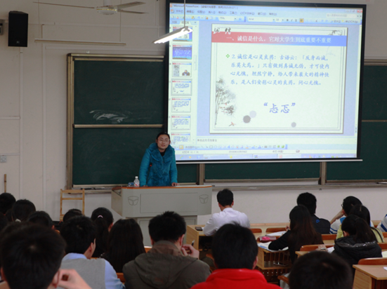 为了落实资助育人的工作目标,加强对受资助学生的诚信、感恩教育,我校学生资助管理中心再次开设了《诚信与感恩》公共选修课,八个教学班,每个班120人。《诚信与感恩》一共24学时,1.5学分,理论环节12学时,实践环节12学时。这次开课在上一次开课的基础上加大了实践教育环节的教育,通过组织选课的学生观看电影、知识竞赛、演讲比赛、义务劳动、素质拓展等各种形式的开展主要体现诚信与感恩为主题的实践活动,加强了对受资助学生的诚信与感恩行为引导。3月16日起,八个教学班级陆续开课,校长助理覃远生到开课现场进行了指导,并和学生一起认真听课。