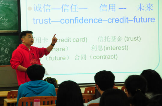 夏辛萍老师从诚信之道,并以古典小故事引导学生去理解诚信之意义;史凌芳老师就开设《诚信与感恩》选修课的背景和现实意义,引导学生从社会主义核心价值观解读诚信,诚信做事、刻苦学习、学会感恩,达到资助育人的目标。并就“什么是诚信?为什么诚信对大学生尤其重要?如何加强大学生的个人诚信?”三个方面为进行讲解并与同学们展开讨论;黄劲老师则以幽默中英文教学方式,结合名人事迹说明诚信与感恩的重要性,讲述坚持诚信、学会感恩对人自身的成长塑造起到很大的积极作用;莫济榕老师则指出当代大学生正处于价值观形成的关键阶段,除了学习知识,学会做人尤为重要,说明开设《诚信与感恩》课程来加强学生的思想素质与品德教育的必要性;滕小艳老师就“诚信与感恩的价值与意义”,引导学生认识到诚信是一个人道德思想与道德行为的体现,赢得诚信,才能赢得尊重,赢得生命的价值.