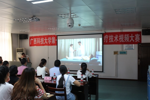 5月20日下午,第一临床医学院在箭盘康复实训室举行第二届物理因子治疗技术视频大赛。第一临床医学院党委副书记陈恒,院学工办就业办主任唐艳红,院团委书记廖容出席大赛。柳州市人民医院、柳州市妇幼保健、柳州市中医院、柳铁中心医院及我校体育学院的5名康复专家担任本次大赛专家评委,康复2014-1班10名学生代表担任学生评委。