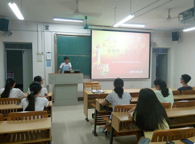 6月25日,电气与信息工程学院第四学生党支部在6南202召开了“两学一做”第二专题“讲规矩、有纪律”微党课。党课由支部书记林鹏主讲,全体党员参加了本次党课。