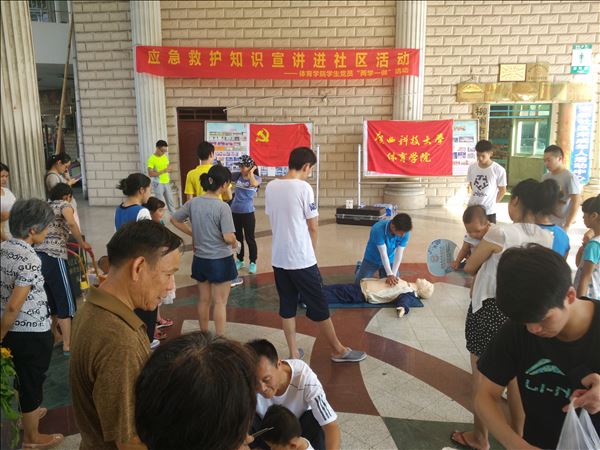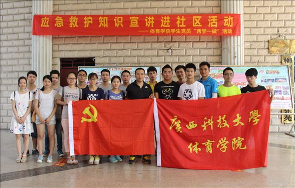 为扎实推进“两学一做”学习教育,提高学生党员的综合素质和服务能力,近日,在体育学院学生党支部书记梁然老师的带领下,部分学生党员走进柳州宏都社区,开展应急救护知识宣讲活动。