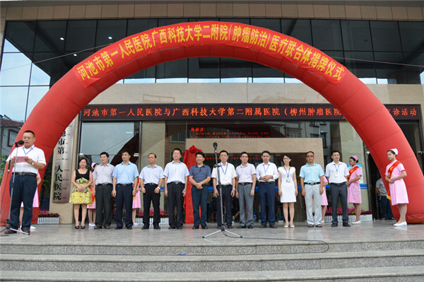 河池市卫计委党组书记、主任韦东禄在致辞中强调,通过河池市人民医院与科大二附院结成肿瘤防治医疗联合体关系,在医院管理、人才培养、技术研究、文化宣传等方面互相借鉴、互相学习,双方都可以不断提高医疗服务质量,以最好的医疗技术和优质服务赢得广大患者的信任和满意。