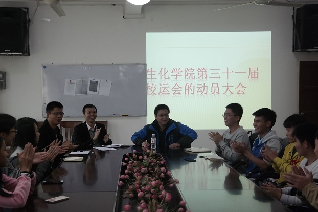 10月31日,生化学院第三十一届校运会运动员动员大会于生化楼会议室圆满召开。院党委书记林海涛、团委书记汪青、助教郭昌盛以及全体体育团成员出席本次动员会。