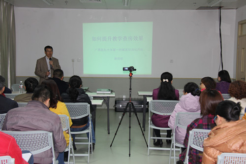 为加快我校一附院建设住院医师规范化培训基地工作进度,11月23日,一附院邀请到了广西医科大学第一附属医院唐国都教授到院进行“如何提升教学查房效果”的讲座和教学查房示范。讲座和教学查房在医院综合病房楼6楼会议室举行,全院科室主任、副主任、教学秘书参加了此次讲座和教学查房示范,讲座由闭雄杰副院长主持。