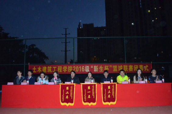 12月1日傍晚,土木建筑工程学院在西区球场举行第七届“筑龙杯”男子篮球联赛闭幕仪式,宣告了从开学激烈角逐、激情燃烧至今的篮球赛画上了一个圆满的句号。土建学院党委书记叶雁冰、党委副书记邓宇以及各年级主任辛姣珍、谭春雷、蒋伟昌、庞乾静及丰华老师作为嘉宾出席本次闭幕式,土建学院学生会副主席吴思晗、体育团团长张海明、裁判长覃上威以及各班篮球队员参加此次闭幕式。闭幕式由土建学院学生会体育部拓建国主持。