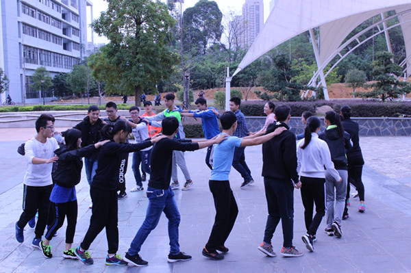户外素质拓展是本次心理健康教育主题活动的重要内容之一。10月30日,体育学院在宗元广场上举行了以“同心”为主题的素质拓展活动,培训活动由社体142班李世煜和洪浩担任培训师,二人均为国家中级素质拓展培训师。这次拓展活动的对象为16级新生。活动开始前,主培师李世煜通过一些破冰小游戏慢慢地调动了的气氛,拉近了同学们之间的友谊。活动第一部分,安排了生日排序、同进同退项目,在这两个项目中,同学们通过肢体语言的配合和团队的鼓励,慢慢地融入活动当中;活动第二部分是本次拓展活动的重头戏――极速60秒,在活动进行当中,刚开始同学们由于项目有一些难度,开始有些气馁,但在团队以及培训师的引导下,慢慢地找到方法,最后通过大家一起努力较快地完成了任务。在后来的总结分享环节中,每个同学都分享了自己在活动中的感悟以及想法。
