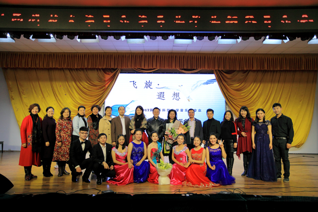 2017年1月3日晚,飞旋·遐想—2017广西科技大学音乐学专业毕业钢琴音乐会在大学生活动中心精彩上演。柳州市文化局原局长、柳州市音乐家协会原主席刘沛盛,柳州市民主同盟主委罗革生,柳州市二职校校长龙陵英,柳东新区工会主席李慕江以及柳北区统计局局长衣弘,北京中意坤技术培训有限公司主任楚倩,学校党政办主任蔡亮,科研处处长惠静,后勤处处长周秉先,工会常务副主席陈芳,团委书记陈克文,外语学院党委书记秦培仁,党政办副主任卢志平,后勤处副处长吕慧玲,医学院副院长文玉萍,医学院药学系党总支书记莫淑蓉,继续教育学院副书记林东榕,生化学院副院长蒋世云,国际教育学院党总支副书记杨章成,艺术学院全体领导以及柳州市各大专院校、职业院校、中小学以及我校校外实践基地,柳州市电视台,柳州市儿童少年活动中心黄等单位领导、社会各界人士与我校师生500多人观看了演出。