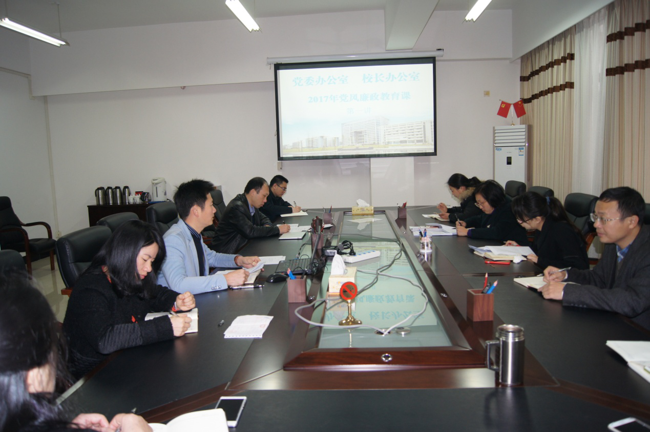 为进一步增强党员干部的廉洁自律意识,强化拒腐防变和抵御风险的能力,2月27日上午,党委办公室、校长办公室(简称“党政办”)开展了2017年党风廉政系列教育的第一课,全体副科级及以上干部参加会议。会议由党政办主任蔡亮同志主持。