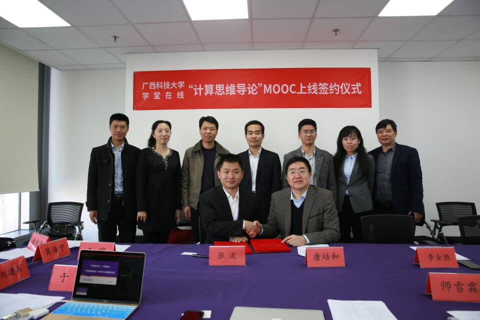 3月2日,我校与学堂在线“计算思维导论”MOOC上线签约仪式在清华大学科技园举行。至此,在我校启迪数字学院的积极推动下,广西高校课程第一次引入到学堂在线。