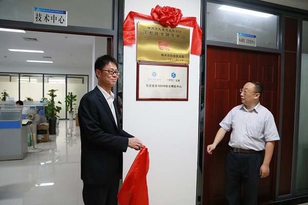 揭牌仪式上,张敏院长和李能斌副总经理共同为两大研究中心揭牌。柳州市先进建造与BIM工程技术研究中心是校企双方2016年联合申报的,该中心于2017年1月份被柳州市科技局认定为柳州市第六批工程技术研究中心。双方一直保持着紧密的校企合作关系,在BIM研究与应用、BIM人才培养上取得丰硕的合作成果。为了进一步加强BIM领域的合作,双方决定成立先进建造与BIM联合研究中心,共同研发与探索3D打印、VR、AR、物联网等先进技术在工程领域的应用。