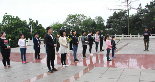 烈士陵园庄严、肃穆,在高大的纪念碑前,团员青年代表们首先向革命烈士默哀,缅怀先烈英魂;分别向烈士敬献鲜花,虔诚鞠躬,并绕烈士纪念碑瞻仰一周,表达对烈士的敬仰之情;并面向纪念碑和团旗,重温入团誓词。第一附属医院团委要求广大团员青年扎实开展“一学一做”教育实践,全面推进改革攻坚、从严治团各项工作,撸起袖子加油干,为建设区域先进特色鲜明的附属医院而奋斗。