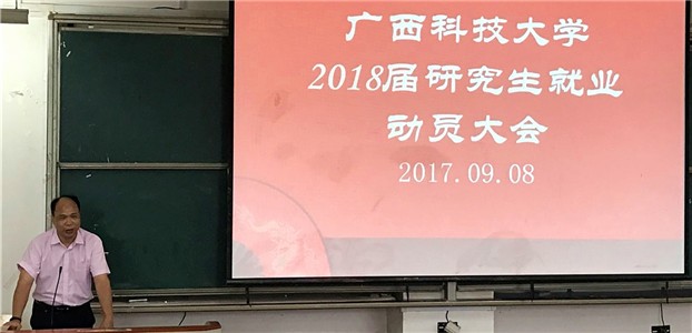 9月8日上午,研究生处召开2018届毕业研究生就业动员大会。研究生处处长谭光兴、正处级调研员陈雁老师出席了本次大会。大会由学生管理科韦剑老师主持。