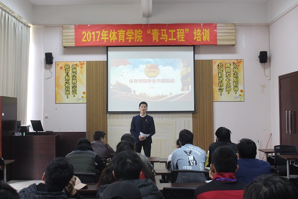 为深入学习党的十九大精神,提升学院团学干部的理论水平和工作能力,12月27日中午,体育学院2017年“青马工程”培训班在体育馆多媒体教室举行。学院党委副书记、副院长陈文彬老师为学员授课,学院四十多名主要学生干部参加了培训。