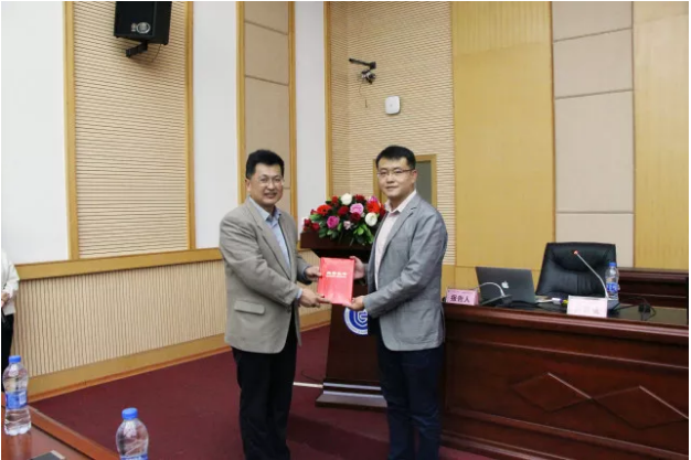 吴国斌博士作了题为“滴滴的人工智能(AI)创新”的报告。他在报告中讲述了人工智能技术已成功应用于“滴滴打车”的多种场景,包括智能分单、供需预测、ETA、路径规划及司乘判责等功能,他还介绍了“滴滴打车”的科技和人才战略,以及在人工智能上的技术创新。主题演讲后,黄劲代表学院给吴国斌博士颁发聘书。
