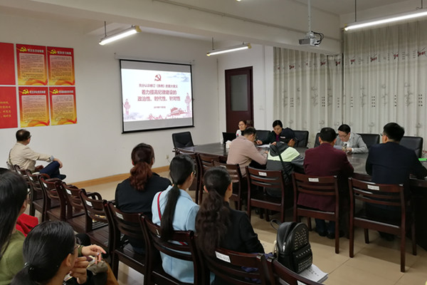 11月13日下午,学院邀请了学校《中国共产党纪律处分条例》宣讲团成员、学校纪委办公室、监察室副主任尹丽,在学院4B409会议室给教工党员以《充分认识修订〈条例〉的重大意义——着力提高纪律建设的政治性、时代性、针对性》为题进行了宣讲。尹丽分别从修订《条例》的重要性、《条例》修订后的主要内容、切实抓好《条例》的学习贯彻执行三个方面进行了深入的阐述,使党员们对《条例》的修订变迁历程以及重要意义有了更深的理解。