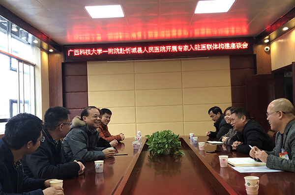 覃天指出,将医疗、康复等专科专家下沉到基层医疗单位进行指导,带动并提升基层医疗能力,让医改新举措真正惠之于民。当天,在忻城县人民医院会议室,该院与忻城县人民医院就进一步开展紧密型医联体建设进行洽谈。第一附属医院多措并举,牵头组建医联体,深入开展医联体帮扶活动,在人才培养、技术帮扶、学术讲座和行政管理等方面不断加深合作。