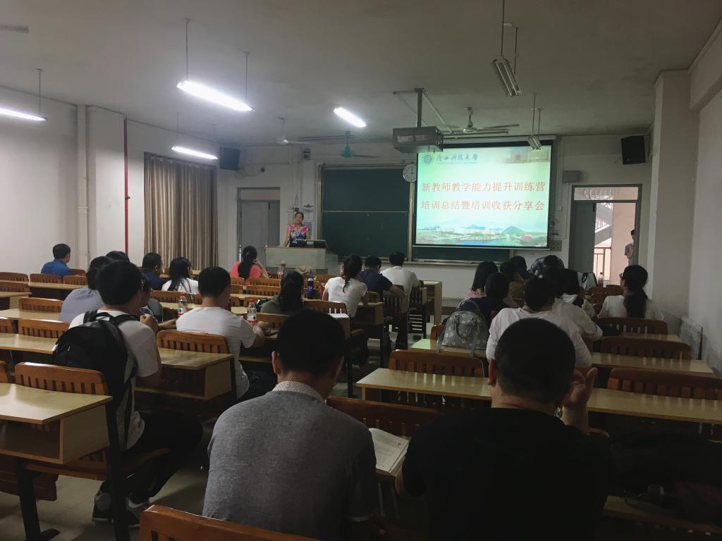 马克思主义学院朱燕老师首先结合自身的教学成长经历,将参训感想、行动以及效果作了现身说法式的分享。朱燕认为本次培训派出的授课教师好、课程内容好、教学方式好、综合服务好、学员才艺好,真正给参训教师解答了困惑、增强了信心、指明了方向、收获了友谊。理学院韦德贤老师把本次训练营的经历比作拍摄了一部名为《如何站好我们的十三尺讲台》微电影,理解培训的目的就是让他今后更好地站好讲台。他主张将课堂教学作为拍摄一部以学习者和教学者的相互体为主线的微电影来设计,教师、学生都是电影的主角,共同完成以教学设计、教学实施、教学测评以及教学反馈与反思等为主题元素,依托现代教育信息技术构成各种教学模式的电影。土木与建筑工程学院王赞芝老师同样认为本次培训收获很大,是他当高校教师以来第一次参加的高水平教学培训,经过培训,他对教育理念、教学方法与教育技术应用以及现代课堂教学变革的理解发生了非常大的转变。在分享会上,他还将自己实际工作中遇到的困惑问题提出来在会上作交流。材料中心的刘宝生老师作为本次培训班的班长,他高度认同前面三位教师分享的观点,并表示本次培训最出彩的最让他印象深刻的是通过分组讨论、小组合作、团队协作、现学现练的教学方式,给他很大的启发,每一场培训都给全体参训教师提供了非常好的示范,受益匪浅。