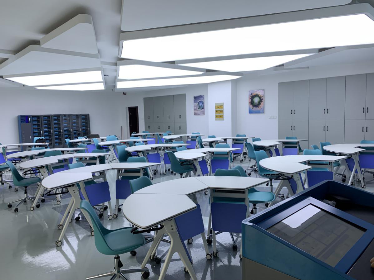 本次项目指导是在VR学院新建成的“VR+科创中心”进行,“VR+科创中心”是基于虚拟现实技术软件系统及VR一体机整体设计的VR大场景多人交互,多人同步,实时互动的虚拟现实教学与实训环境。该中心由HTC FOCUS虚拟现实一体机、高性能服务器、教师定制化触碰交互集控台、虚拟现实内容与设备管理系统、高性能企业级路由器及教室整体空间设计与布局于一体,支持学院开展虚拟现实沉浸式认知教学、交互式实训实操训练,创新课堂教学模式。解决传统教学不能支撑的高成本、高风险、宏观、微观教学难题,提升教学质量。