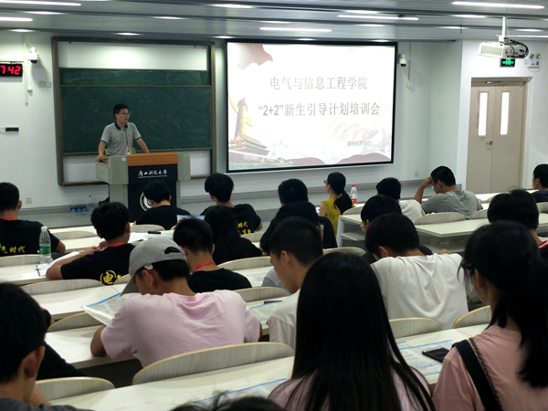 为帮助2019届新生更好地适应大学生生活、尽快实现从高中被动式的学习方式向大学自主式学习方式的转变,在暑假前夕,电气学院于7月3日在T1-105召开了“2+2”新生引导计划培训会,2019届新生班主任助理、全体“2+2”学长参加培训会。学院党委副书记蒋智华在培训会上作要求并讲话。