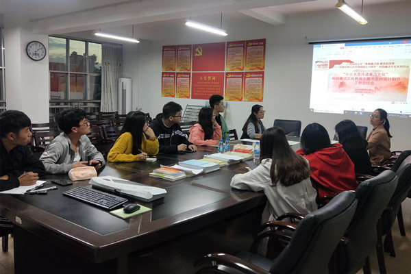 廉洁书签设计制作项目是学校“奏响廉洁颂激荡爱国情——庆祝中华人民共和国成立70周年”校园廉洁文化活动的项目之一,韦齐齐对书签设计制作的背景以及意义进行了强调说明,并组织大家对设计稿进行了全面细致的审核,针对每张书签设计图的设计理念、设计意象、色彩调配、文字样式等设计元素提出了进一步的修改意见。同时围绕每个不同主题系列的书签在材质、尺寸、数量及价格等方面的要求,与主创团队成员们进行了沟通交流,最终明确了具体方案。最后,韦齐齐再次强调了书签设计的理念与初衷,希望主创团队能团结合作、精益求精,努力设计出优秀的书签作品。