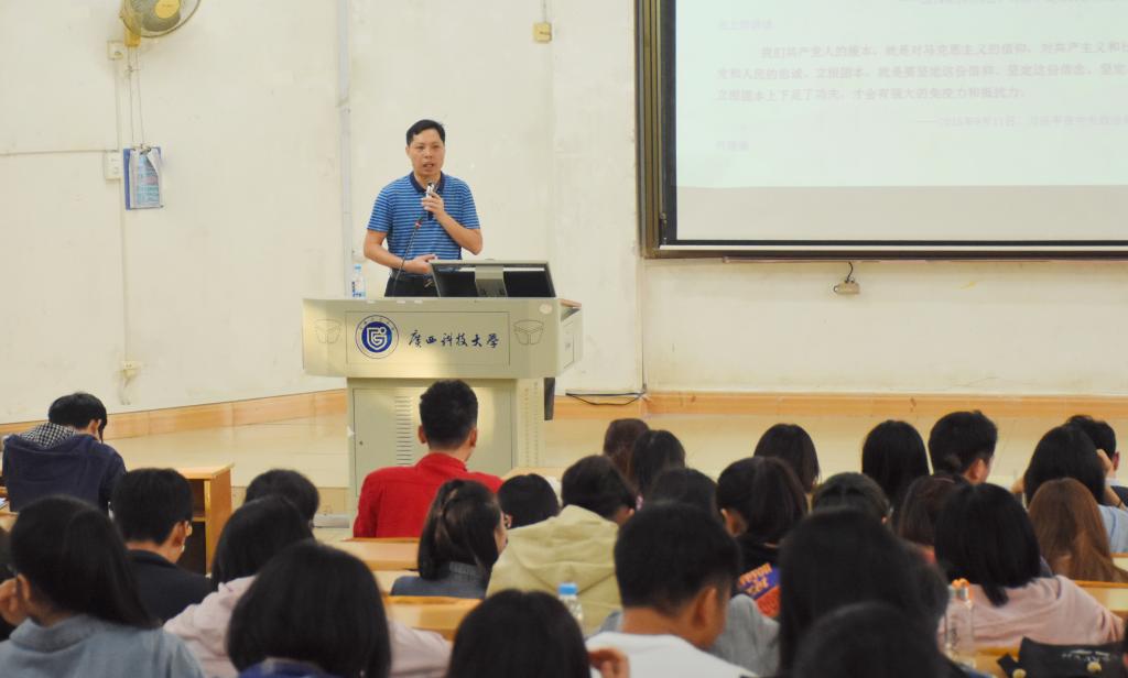 校党委宣传部副部长覃雪梅主讲《学习贯彻党的十九大精神,从思想上、行动上真正入党》