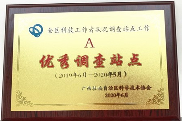 近日,在自治区科协调查宣传部公布的《2019—2020年度广西科技工作者状况调查工作优秀单位及个人评定结果的通报》中,我校科协科技工作者状况调查站点被评为“广西优秀调查站点(2019年6月—2020年5月)”,赖恩平被评为“优秀调查员”,这是我校科协首次获此殊荣。在7月10日百色市召开的2020年全区科技工作者状况调查站点工作会议上进行了表彰。