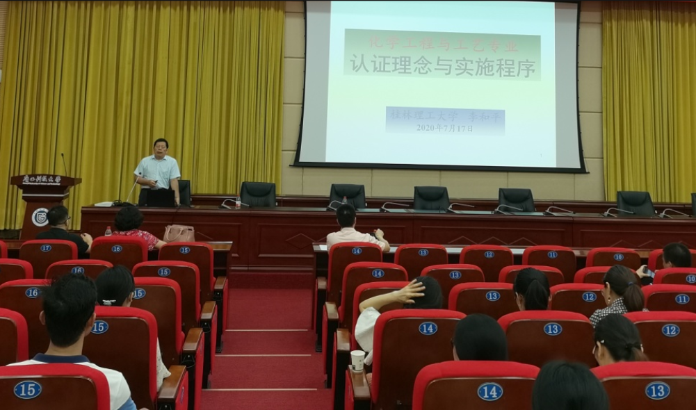 7月17日上午,生物与化学工程学院邀请桂林理工大学李和平教授在东环校区行政楼二楼多功能报告厅作关于开展专业认证工作的报告。李和平教授对化学工程与工艺专业认证的相关工作进行了详细的介绍,并结合桂林理工大学认证成功的经验,从毕业要求的制定、课程大纲的编写、课程达成度等方面详细阐述了如何完成每一项要求指标。