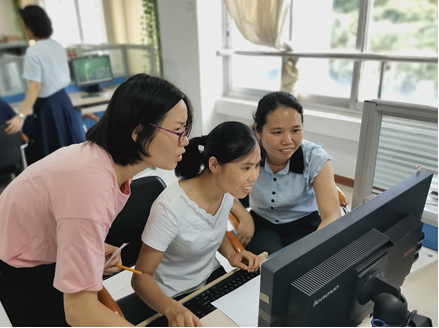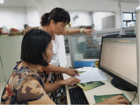 韦耘耕老师、韦柳燕老师仔细核对并录入成绩