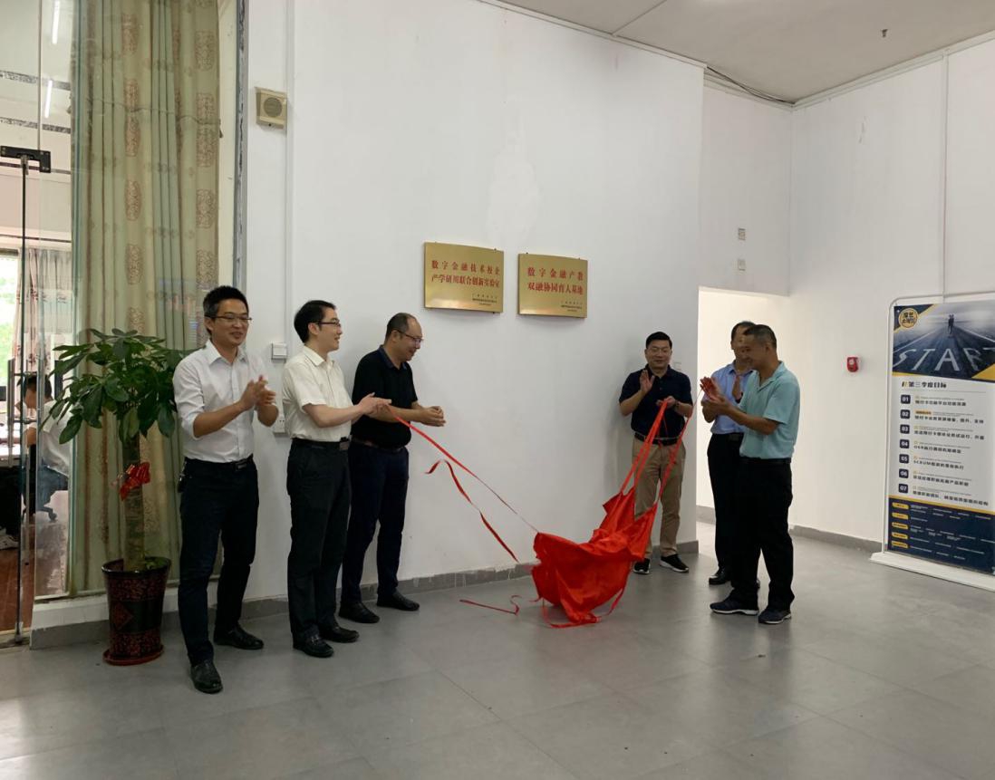 9月9日,我校与柳州智银通信息技术有限公司数字金融产教融合协同育人基地暨产学研用校企联合金融软件创新实验室揭牌仪式在柳州智银通信息技术有限公司举行。柳州市商务局局长刘伯臣、柳州市城中区副区长佟德军,计通学院党委书记彭勇、副院长周坚和,经管学院副院长杨毅以及柳州智银通信息技术有限公司总经理穆轶,共同为基地及实验室揭牌。城中区工信局局长晁耀杰,计通学院各系负责人以及部分教师,柳州智银通信息技术有限公司咨询师庞振峰、运营经理梁建雄参加揭牌仪式。