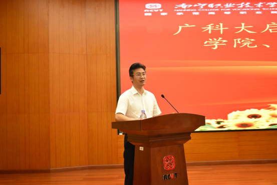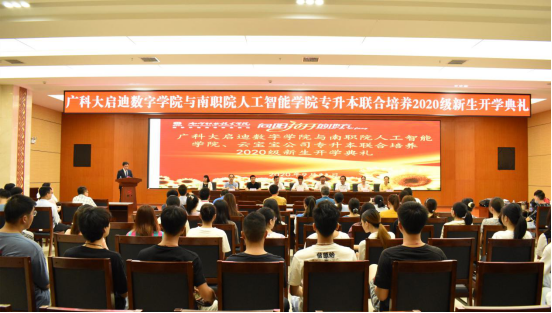 9月11日上午,广西科技大学启迪数字学院与南宁职业技术学院人工智能学院、云宝宝大数据产业发展有限责任公司首批联合培养的“专升本”2020级新生开学典礼,在南宁职业技术学院会议中心二号厅隆重举行。