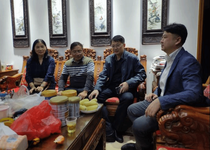 10月22日晚,土建学院党委书记杨南、院长吴辉琴、副院长邓宇、党办主任张哲源一行走访慰问我校派驻融安县泗顶镇三坡村扶贫第一书记陈群同志及家属,为他们带去学院党委的亲切关怀和问候。