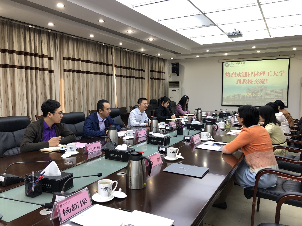 10月23日,桂林理工大学党委办公室、校长办公室副主任黄敬秀一行到我校党委办公室、校长办公室 调研交流。座谈会在东环校区行政办公楼6—1会议室举行。校党委办公室、校长办公室主任邓朗妮及副主任梁茜茜,部分科室干部参与座谈交流。