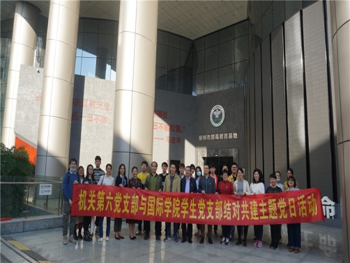 11月13日,学校机关党委第六支部与国际教育学院学生党支部结对共建,到柳州市禁毒教育基地开展主题党日活动。