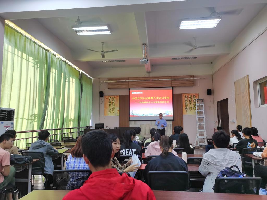 挂牌仪式结束后,学院邀请覃峰医师到校与运动康复专业学生分享交流。覃医师以《运动康复专业人才市场需求前景分析》为主题,结合自身经历就运动康复专业的认知、发展前景、行业动态、以及就业方向进行了详细的分享,同学们热情很高,分享结束后纷纷与覃医师沟通交流并添加其联系方式,此次分享会进一步加强了运康专业学生对专业的认知,明确今后努力的方向。
