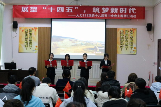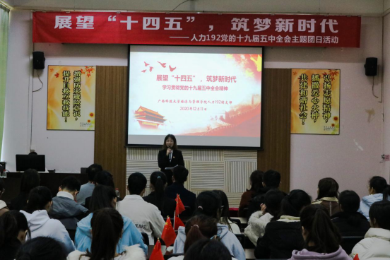 近期,经济与管理学院上下掀起了学习“十九届五中全会”精神的热潮,人力资源管理专业192团支部于12月11日举办了主题为“展望‘十四五’,筑梦新时代”——学习贯彻党的十九届五中全会精神主题党日活动。校团委书记朱广生、学院党委副书记陈学智、学院团委书记翁文雯参加主题党日活动,团支书秦丽萍同学主持活动。