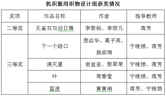 11月11日,“红绿蓝杯”第十二届中国高校纺织品设计大赛比赛结果揭晓。本次比赛由中国纺织教育学会主办,共收到来自48所高校得1461件作品。生化学院学子在众多选手中脱颖而出,获得了一等奖1项、二等奖4项、三等奖8项的优异成绩,蒋芳老师荣获大赛“优秀指导教师”的荣誉称号。