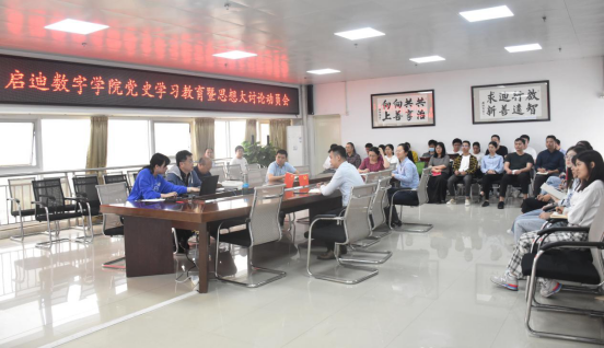 5月6日下午,启迪数字学院召开党史学习教育暨思想大讨论动员会,学院党委书记黄劲,党委副书记、纪委书记史凌芳,副院长王萌、学生事务中心主任张筱晨、广科大启迪数字科技园副主任吕勇强等领导参加会议,学院全体教职工到场参会。