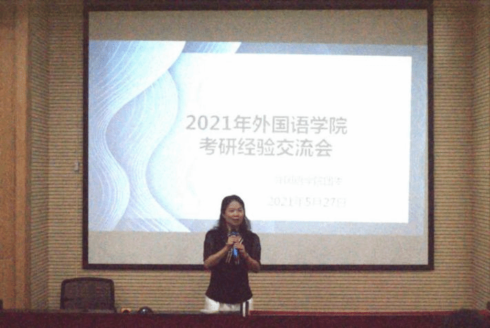 5月27日晚,外国语学院考研经验交流会在基础楼102举行,由学院5名考研成功的同学现场为备考同学传授学习经验,学院党委副书记赵足娥参加本次交流会。