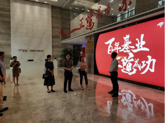 正当学校组织开展办学思想大讨论之际,为推进与知名大型行业企业深度合作,深化产教融合,进一步拓宽校企合作路径,经济与管理学院院长卢志平、副院长朱晓琴、实验教学中心主任陆成裕、管科系教师谭永林一行4人于6月1日前往江苏京东宿迁总部考察交流,商谈双方战略合作事宜。江苏京东信息技术有限公司校企合作部总经理杨程,大区经理万昌昌、孙政,区域经理董赛,以及京东合作伙伴——深圳京才教育科技有限公司董事长宋仁仙、副总经理郭超等人员陪同考察。