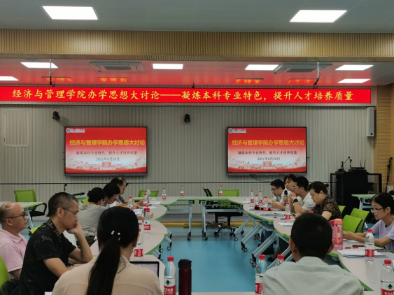 正值学校“抢抓新机遇、实现新跨越”办学思想大讨论纵深推进之际,为进一步理清人才培养思路,凝练专业建设特色,修订人才培养方案,不断提升人才培养质量,6月28日下午,经济与管理学院在东环校区第四教学楼4D403多功能会议室召开人才培养专题研讨会。学院党政领导、教授委员会、系主任、专业负责人以及学院中层干部参加研讨会。会议由副院长朱晓琴主持。