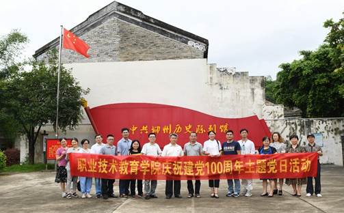为庆祝中国共产党建党100周年,扎实推进党史学习教育,6月30日下午,职教学院教工党支部来到位于柳江区成团镇灵江村的成团会议旧址(中共柳州历史陈列馆),开展“红色走读”主题党日活动。